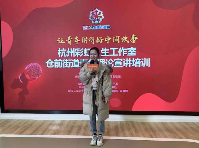 大三學生的杜錦濤的理論宣講主題是“兩山”理論與水資源保護。他說,“很喜歡這種特別的作業形式,很希望能通過宣講這種形式,激勵身邊更多的同學保護環境,踐行浙江精神,也可以激發他們參與到宣講活動中來。”