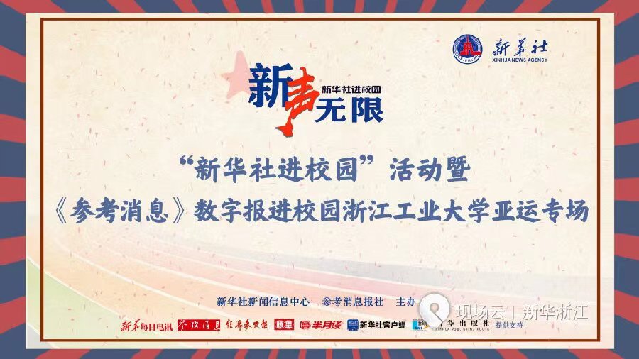 5月12日,“新華社進校園”活動暨《參考消息》數(shù)字報進校園浙江工業(yè)大學亞運專場在我校板球場報告廳舉行。新華社客戶端5月13日以《“新聲無限——2023年新華社進校園活動”走進浙江工業(yè)大學》為題,報道活動實錄。