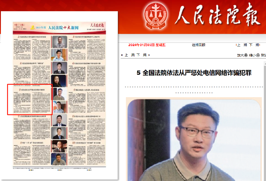 1月5日,《人民法院報》刊登2023年度人民法院十大新聞,我校法學院俞鋒副教授受邀為《全國法院依法從嚴懲處電信網絡詐騙犯罪》作點評。