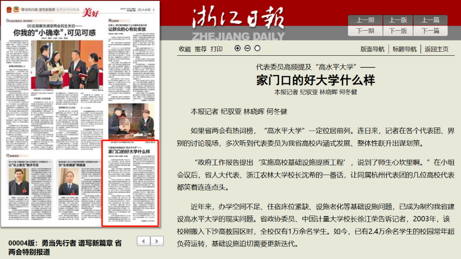 1月26日,省人大代表、我校教務處處長計偉榮接受《浙江日報》采訪,談浙江省高校內涵式發展和高水平大學建設。