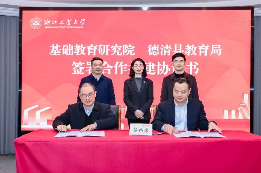基礎(chǔ)教育研究院與德清縣教育局共同簽署《合作共建“浙江工業(yè)大學(xué)基礎(chǔ)教育研究院”協(xié)議書》。