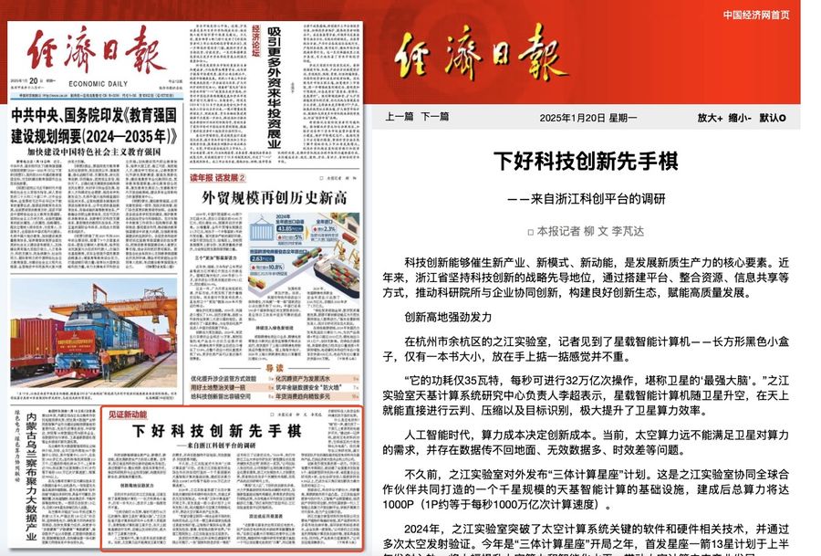 1月20日,《經濟日報》第1版,以《下好科技創新先手棋》為題,報道浙工大發揮技術人才資源優勢,聯合企業攻克多個關鍵技術難題,實現產品的成功研制與上市。