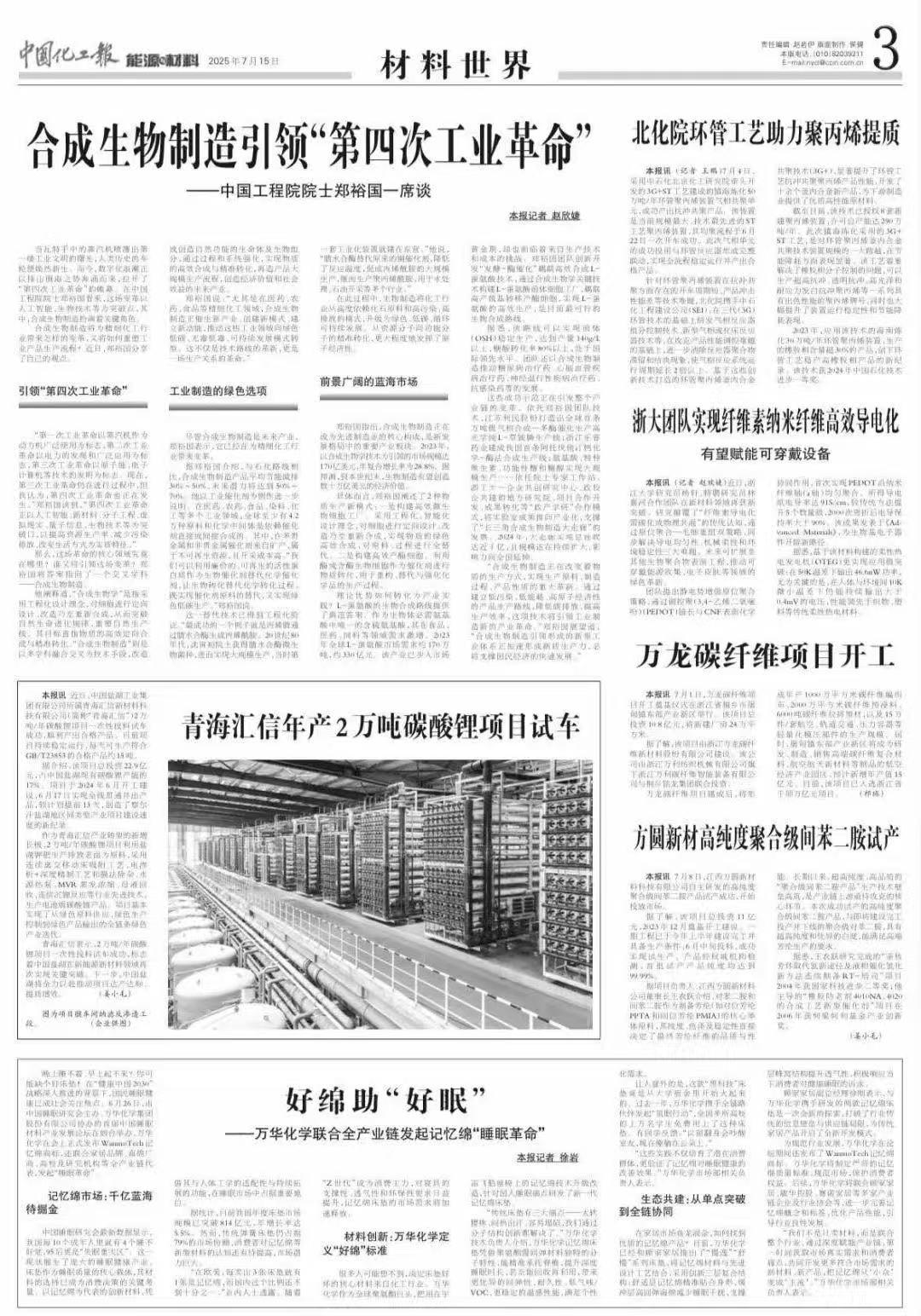 7月15日,《中國化工報(bào)》以 “合成生物制造引領(lǐng)第四次工業(yè)革命——中國工程院院士鄭裕國一席談”為題,報(bào)道了鄭裕國院士對(duì)合成生物制造作為第四次工業(yè)革命推動(dòng)力的深刻解讀及其在我國的蓬勃實(shí)踐。